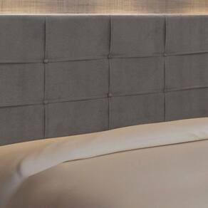 Cabeceira para cama produzidas com madeira tratada de fixadas com garmpos galvanizados não permitindo a oxidação, espuma em densidade 16 testadas periodicamente em laboratório garantindo a funcionalidade e qualidade, tecido suede dublado reforçado detalhes em captonê em forma de quadrados em acabamentos de botões revestidos pelo próprio tecido, pés em madeira eucalipto tratado e reflorestado, semi frames para fixação diretamente na cama box.