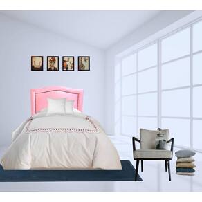 Cabeceira Solteiro Línea Curva Rosa com Tachas Fumê Cabeceira Solteiro Línea Curva Rosa com Tachas Fumê