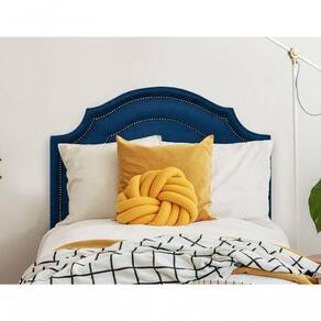 Cabeceira Solteiro Provençal Luxo Dupla 90x60 Suede Azul - Tachas Fumê