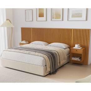 - Detalhes: Ripado Natural Envelopado; Mesa de cabeceira com gaveta e corrediça telescópica; Puxador de couro com argola;