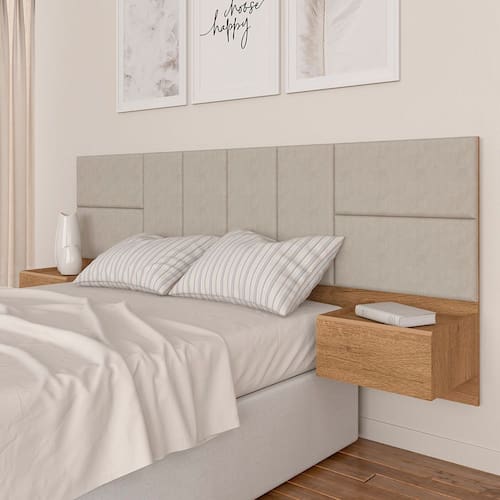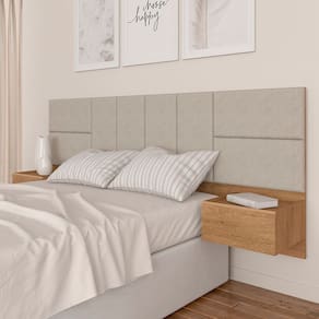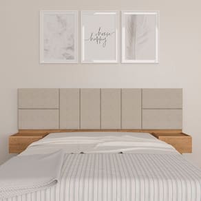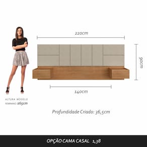A Cabeceira Malibu suspensa com mesa lateral une praticidade e conforto. O grande destaque é o painel almofadado trazendo modernidade e beleza.Detalhes Técnicos:Medidas da Cabeceira montada: A:90cm | L:220cm | P:36,5cmMateriais de Fabricação:- Chapa MDP 15mm- Revestimento: Pintura UV-Tonalidade: Carvalho Americano-Tonalidade do tecido : Suede Bege- Corrediça Metálica- Produto suspenso (Fixado na parede com régua)-Medida para cama:138cm- Estruturado com material de altíssima qualidade, evitando fungos e mofo.Conteúdo da Embalagem:- 01 Cabeceira- Plástico protetor- Caixa papelão- Acessório para Montagem: Cavilhas, Parafusos, Sache de cola, Etiqueta, Tapa furo.Observações Importantes:- As imagens ambientadas são meramente ilustrativas e podem apresentar itens que não incorporam o produto;- Todos os nossos produtos são novos, acompanham documento fiscal e possuem garantia de 3 meses, essa garantia cobre somente defeitos de fabricação;- A entrega só será efetuada no endereço do CEP, caso o endereço seja diferente do CEP informado no pedido, a entrega terá cobrança adicional e o comprador arcará com as despesas;- Não realizamos entregas para zonas rurais, via caminhos fluviais e distritos, por isso não aceitamos CEP GERAL da região;- Não é possível realizar o agendamento de entrega do produto, é necessário que acompanhe o rastreio de seu pedido para saber a previsão de entrega;- As entregas somente serão realizadas para um responsável maior de idade (+18);- Enviamos para diversos estados, sendo assim nossas entregas são realizadas por transportadoras parceiras de nossa empresa. Confira as dimensões antes da compra e certifique-se de que o produto passará por elevadores, portas e corredores já que nossa entrega não inclui a subida de lances de escada, transporte por elevador e o lançamento de produtos, em caso de condomínios residenciais a entrega é feita somente até a portaria. Todas as entregas são realizadas em dias e horários comerciais;- Ao receber os seus produtos observe se a embalagem se encontra em perfeitas condições. Se você adquiriu algum móvel, confira atentamente a quantidade de volumes e o aspecto físico das embalagens. Confira também se a cor do móvel está de acordo com o seu pedido;- O prazo de cancelamento por arrependimento é de até 7 dias corridos a contar da data de recebimento;- Os produtos e assistências são enviados DESMONTADOS, MONTAGENS E DESMONTAGENS recomendamos sempre a contratação de um montador profissional e é válido lembrar que o custo desses serviços é por conta do comprador;- Objetos decorativos que aparecem na foto não acompanham o produto;- Evitar a exposição direta à luz solar e à umidade;- Para limpeza, limpar com pano macio e seco, não utilizar qualquer outro tipo de produtos químicos;- As cores do produto podem variar de acordo com o monitor, a iluminação do ambiente ou sua percepção visual;