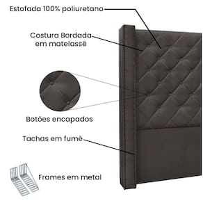 É produzida em madeira industrializada , botões forrados no tecido com costura bordada, trazendo um ar mais sofisticado para o seu quarto.
