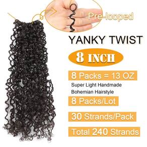 Nosso cabelo de crochê torcido é feito de material de fibra sintética de alta qualidade que é suave no seu couro cabeludo e fácil de manter. O cabelo é macio, sem emaranhados e não solta nada, garantindo uma aparência e sensação naturais. Nosso cabelo trançado sintético Yanky Twist pré-torcido é pré-torcido e vem em um design pré-laço fácil de usar, tornando-o rápido e simples de instalar. É versátil o suficiente para ser utilizado diretamente ou utilizado para criar uma variedade de novos penteados, como cabelo de crochê Butterfly Locs, pontos envelhecidos, falsos locs, tranças de paixão, cabelo torcido senegalês e muito mais. Este cabelo trançado de crochê é adequado para mulheres de todas as idades e pode ser utilizado diariamente ou para ocasiões especiais quando você quiser mostrar seu charme único. O cabelo de crochê Mini PassionTwist é especialmente criado para oferecer uma sensação natural e confortável, o que o torna uma adição essencial à sua coleção de cuidados com o cabelo. O cabelo de crochê Spring Mini Twist com micro tranças senegalesas cacheadas adiciona volume e textura ao seu cabelo, proporcionando um toque de drama e elegância ao seu estilo. O Sene Encaracolado As tranças galese Micro Twist são uma característica única deste produto, oferecendo uma aparência deslumbrante e atraente. Eles são ideais para criar um visual marcante que vai chamar a atenção onde quer que você vá. Com este toque chique, você pode facilmente fazer a transição de um dia casual para um evento noturno glamoroso, tornando-o uma adição versátil ao seu arsenal de penteados. Com suas propriedades leves e duradouras, este cabelo se sentirá confortável de usar e adicionará volume e salto ao seu cabelo sem qualquer peso. É fácil de cuidar e pode durar até 12 semanas ou até mais com manutenção adequada, tornando-se uma solução de estilo econômica. Em conclusão, é uma peruca requintada e de alta qualidade que oferece uma variedade de opções de estilo. É perfeito para mulheres que apreciam a beleza natural e gostam de experimentar diferentes visuais - ?Estilo com um clique?: O cabelo de crochê torcido da Aksice Bohemian Yanky é pré-torcido e fácil de usar, oferecendo um visual único e moderno com mini cabelo de crochê torcido e tranças cacheadas senegalesas. Com 8 pacotes por lote e 30 fios por pacote, você pode cobrir totalmente sua cabeça com apenas 7 a 10 pacotes. Escolha entre uma ampla variedade de cores para combinar com o seu estilo! - ?Volume micro e encaracolado?: Nosso cabelo de crochê Yanky Twist é conhecido por sua textura micro e encaracolada, proporcionando uma aparência natural e volumosa. As exclusivas tranças Passion Micro Twist adicionam uma camada extra de profundidade e dimensão ao seu penteado, perfeitas para adicionar volume e elegância ao seu cabelo para um passeio casual ou um evento especial. - ?Estilo simples?: Nossas tranças de crochê Yanky Twist pré-torcidas e pré-torcidas facilitam o penteado. O cabelo de crochê Spring Mini Twist é projetado para facilitar a fixação e remoção, permitindo que você experimente diferentes estilos e alcance o visual que deseja em minutos. É perfeito para aqueles que valorizam a conveniência e flexibilidade em suas opções de estilo. - ?Conforto o dia todo?: As tranças de crochê Boho são projetadas especificamente para atender às necessidades exclusivas das mulheres negras. Leve e suave no seu couro cabeludo, eles garantem o uso durante todo o dia sem o incômodo de desconforto. Eles fornecem volume e protegem seu cabelo natural, fazendo com que seu cabelo pareça mais saudável e melhor com cuidados simples. - ?Penteados versáteis?: Este cabelo trançado de crochê torcido Yanky não é apenas para usar diretamente. Você pode criar diferentes novos penteados, como cabelo de crochê Butterfly Locs, pontos envelhecidos, falsos locs, tranças de paixão, cabelo torcido senegalês e muito mais. É adequado para mulheres de todas as idades e uso diário, oferecendo infinitas possibilidades de estilo.