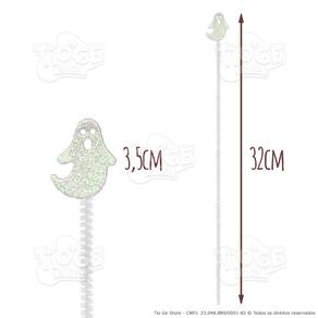 - 1 Pacote com 10 Hastes Flexíveis de Pelúcia na cor Branco com apliques de Fantasma.