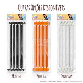Prepare-se para uma explosão de cabelos criativos neste Halloween! O Cabelo Maluco ou Penteado Maluco tornou-se uma tradição assustadoramente divertida em escolas e festas infantis. Para elevar a diversão, apresentamos as Hastes Flexíveis de Pelúcia para Halloween, a ferramenta perfeita para transformar cabelos normais em criações horripilantes, divertidas e únicas. O pacote é composto por 10 peças com aproximadamente 32cm de comprimento. As hastes possuem aproximadamente 6mm de espessura. O aplique é fabricado em EVA com Glitter e tem aproximadamente 3,5cm. Os apliques já vêm fixados em uma ponta da haste, tornando sua utilização ainda mais fácil e prática. Se necessário, podem ser cortadas com uma tesoura comum.