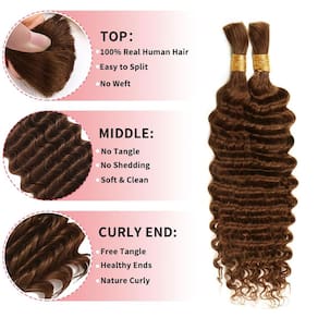 -?Cabelo humano trançado de alta qualidade?: O cabelo humano em massa de ondas profundas para trança é feito de cabelo humano virgem brasileiro 12A 100% não processado. A textura do cabelo humano encaracolado para tranças boho é incrivelmente macia, natural, confortável, lisa, de comprimento real, sem emaranhados, sem cheiro estranho, cheia e grossa. Nosso cabelo trançado pode unir naturalmente seu cabelo e apresentar efeitos de penteado realistas, para que você possa brilhar com confiança a qualquer hora e em qualquer lugar.