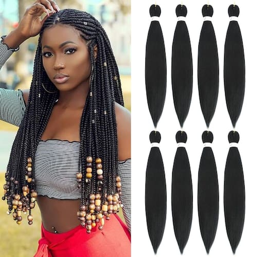 - ?Material do cabelo trançado?: O cabelo trançado pré-esticado é feito de fibra sintética retardadora de chamas de alta qualidade e baixa temperatura.