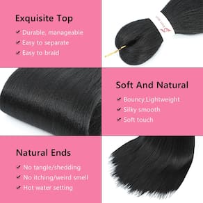 - ?Características do cabelo trançado?: Aparência natural, textura yaki macia, sem coceira, leve, sem cheiro químico, toque macio como cabelo humano.