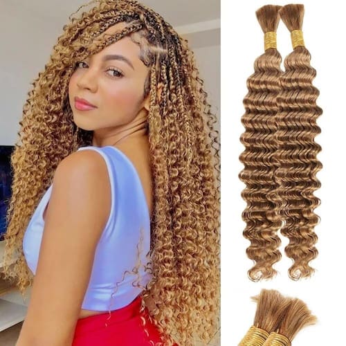 Cabelo humano loiro trançado, onda de água profunda, cabelo humano a granel, 100 g, 50 cm, cor 68 cm, cabelo humano encaracolado para tranças boho, extensões de cabelo sem trama, 2 tranças por pacote, cabelo humano molhado e ondulado