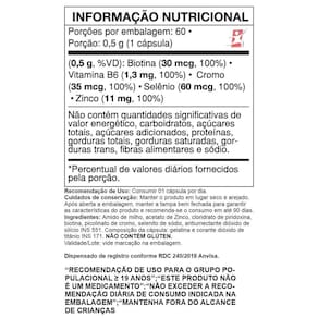 Benefícios - apenas 1 cápsulas ao dia; - com: biotina, vitamina b6, cromo, selênio e zinco; - fortalecimento e crescimento dos cabelos e unhas; - redução da queda dos fios; - manutenção e melhora da pele; - ação antioxidante; - não contém glúten. - sem açúcar; - sem glúten.