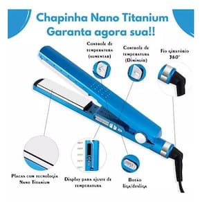 Cabelos impecáveis: chapinha nano titanium bivolt prancha alisadora de cabelo Chapinha prancha para cabelo Chega de frizz com regulador de temperatura para até 450ºf 230ºc , esta chapinha é ideal para você ficar bela e impecável com lindos fios lisos e sem danificá-los. Feita em tecnologia de ponta, ela é ideal para todos os tipos e suas placas de titânio aquecem rapidamente alisando o cabelo de forma rápida e fácil. Além de tudo ela conta com um cabo giratório em 360º para facilitar seu uso