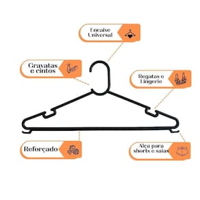 Cabide Adulto Preto Kit 100 Cabides Reforçado Organizar Roupa Cabide Adulto 8mm de espessura É um kit com 100 CABIDES de QUALIDADE e REFORÇADOS Somos fabricantes e garantimos a Qualidade e a Durabilidade, Utilizamos apenas os melhores materiais na fabricação do produto para garantir que o cliente fique satisfeito - Acabamento arredondado- Não agride sua roupa- Com Abertura para Blusa de alça, Vestidos, Top e Roupinhas de bebe e muito mais. Suporta até 2kg ----------- Descrição Técnica -----------Material: PP Polipropileno Dimensões: 36cm Largura, 17cm Altura e 9cm InternoCaso não goste da qualidade aceitamos sua devolução de imediato Marca: Hshs - House