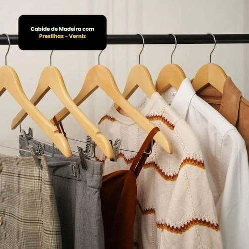 O Cabide de Madeira com Presilhas é a solução ideal para quem busca organização e estilo no armário. Mantenha suas roupas sempre bem cuidadas e à mão!