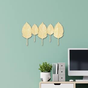 - Incorpora 5 peças de folhas douradas sobrepostas formando 5 ganchos inferiores