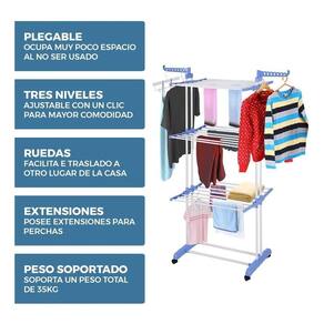 Não sirva para sabanas em cubrecamas.Para armar el tendedero debe hacerlo con cuidado y paciencia. Para serem mais robustas e duradouras, as conexões são ajustadas com um pouco de pressão.” Não deve exercer muita força com martillos ou objetos pesados para evitar quebrá-lo.” TENDEDERO PRACTICO PARA TU HOGARTendedero Vertical composto por tres (3) niveles de jillas que serán suficientes para colocar todas as suas roupas como calças, poleras, pijamas, roupa interior, etc. Dimensiones mas amplias a las de un tendedero convencional y plegado ocupa muy poco espacio, ideal para tender ropa o fugitivo era em casa e em departamentos. Además dispone de barras laterales para colgar vestidos ou camisas.Tendedero Vertical incluye en su base 4 ruedas muy versátiles ideal para desplazarlo por cualquier sitio de la casa, como de la terraza al interior o de una habitación a otra.Características: - Peso: 3,9 kg.- Capacidade por nível: 5 kg.- Medidas do produto armado: 170 cm de altura x 76 cm de comprimento x 64 cm de largura.- Plegável.- Dispone de rejillas laterales para perchas.- Diseño ergonómico.- Material polipropileno resistente.- Dispone de 4 ruedas.- Fácil instalação