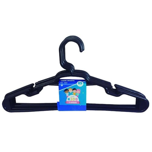 Cabide Infantil 5 Peças Preto Reforçado 28X14Cm Trioplast CABIDE INFANTIL 5 UNIDADES PRETO TRIOPLAST