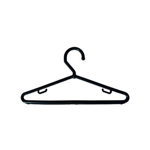 Cabide Infantil Preto - 12 Peças Cabide infantil de plastico preto. Muito Utilizado, também, para organizar calças de adultos, pendurando elas dobradas. Medidas: 8mm de espessura 28,4cm de comprimento. Ean: 7898609870147