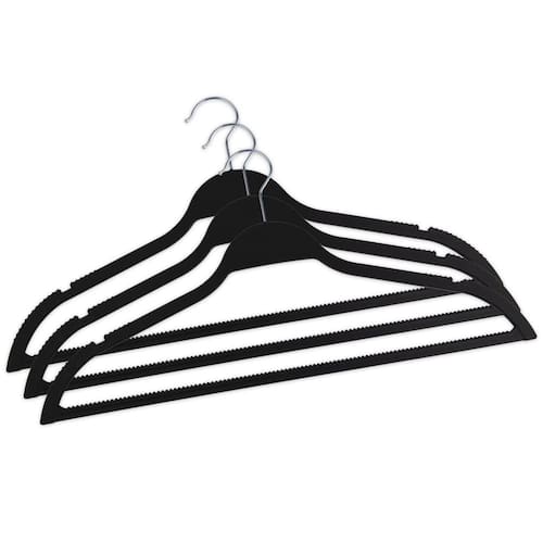 Com o Cabide Le Coat, você organiza suas roupas com praticidade e ainda conta com um design elegante. Produzido em plástico, ele é resistente, firme e fácil de limpar. O cabide Le Coat é perfeito para quem deseja manter o guarda roupa organizado, além de preservar as roupas sem amassar, possibilitando maior aproveitamento do cabide e do espaço dentro do guarda-roupa. Com o cabo prateado, ele se destaca e se diferencia dentre outros cabides pelo seu design. Contém 3 unidades na cor preta. Aproveite a oportunidade e compre já o seu Cabide Le Coat Plástico com Cabo Prateado 3 Unidades Preto na Le Biscuit.