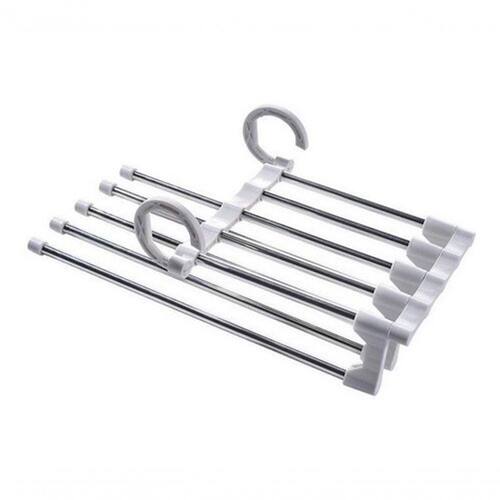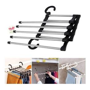 Cabide Mágico Multifuncional De Aço Inoxidável 5 Em 1 Cabide Útil para pendurar calças, saias, cachecóis, etc... pode economizar espaço até 50%. Fabricado em material forte de aço inoxidável.