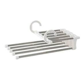 5 peças de roupas no espaço de apenas 1 cabide. É recomendado para usar em Roupas e calças pois não as desfia. Permite duas funcionalidades tanto horizontal, quanto vertical facilitando a organização e valorizando o seu espaço. Possui um design atraente e transforma qualquer guarda roupa, closet ou loja em um ambiente moderno, sofisticado e Organizado. Perfeito para quem gosta de qualidade e praticidade. O design exclusivo permite que você pendure e remova calças de forma rápida e eficiente. Para manter suas roupas no lugar, protegendo-as de vincos ou problemas indesejados. Este cabide deixa as suas roupas muito mais organizadas, ele pode ser para calças, saias, bermudas, cachecóis, camisetas, camisa, o que quiser. Ele pode suportar até 5 peças, aumente o espaço útil do seu guarda-roupas ESPECIFICAÇÕES: Cor : Branco. Material: plástico e aço inox Medida: 34 x 15 x 7 cm Contém: 01 Cabide Multifuncional Marca: Não Informado