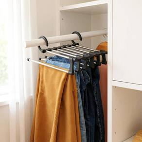 Cabide Multiuso 5 Divisórias Retrátil - Inox Cabide Multifuncional - A Solução Perfeita para Seu Guarda-Roupa