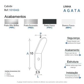O cabide da linha Agata possui um design minimalista em linhas arredondadas, é uma peça de requinte que se destaca com luxo no seu banheiro. ;