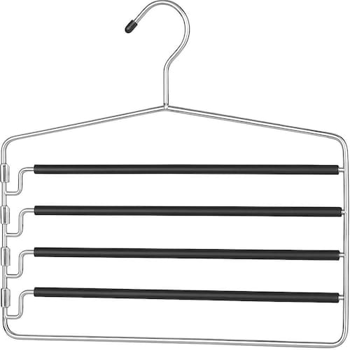 - Braços acolchoados removíveis: estes cabides de calça de braço oscilante apresentam braços acolchoados removíveis, acomodando vários tipos de calças enquanto evitam vincos e rugas. Ideal para manter as roupas em perfeitas condições, elas maximizam o espaço do armário e podem ser usadas para secagem interna e externa.