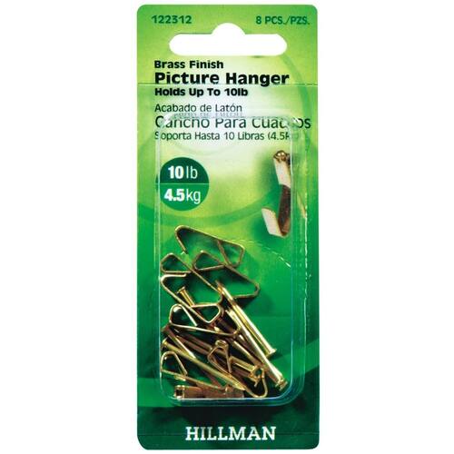 Pacote de 8, 10 lb, latão banhado, clássico, gancho de imagem recomendado para imagens com até 10 lb, unhas incluídas.
