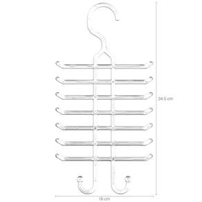 Garantia: 90 dias / Peso: 90g / Cor predominante: cristal / Ref: 7896456011607; Dimensões: 18cm (C) x 0,5cm (L) x 34,5cm (A); Material: poliestireno; Comporta: 16 gravatas ou cintos; Conteúdo: 1 cabide para gravatas e cintos; Cuidados: não utilizar materiais abrasivos na limpeza do produto.