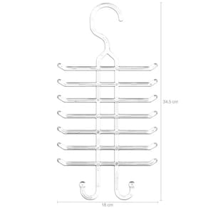 Um cabide para gravatas e cintos é um suporte organizador projetado especificamente para guardar e exibir as peças de forma prática e organizada em guarda-roupas, armários ou closets. Esse cabide é feito de material resistente, que proporciona uma aparência elegante e contemporânea, permitindo que você veja facilmente todas as suas gravatas em um único lugar. O cabide para gravatas possui 16 ganchos dispostos de maneira ordenada, nos quais as gravatas podem ser penduradas individualmente. Com o porta gravatas Cristal, você pode cuidar melhor das suas gravatas, evitando vincos, rugas e danos, prolongando sua vida útil e deixando seu ambiente mais harmônico e organizado.