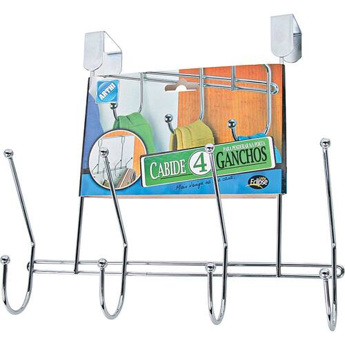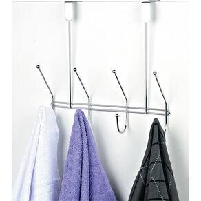 Invista em bom gosto e praticidade na hora de organizar o espaço na sua casa! Este cabide tem 4 ganchos para você instalar na porta do quarto ou até mesmo de um armário. Pendurando as roupas, guarda-chuvas e outros objetos, você pode aproveitar os espaços na sua casa da melhor maneira. Ele é todo feito em aço cromado para garantir maior durabilidade à peça.