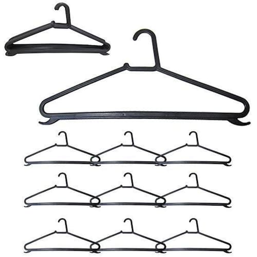 Cabide Roupa Plastico Chato Preto Perola 10 Peca 39X19Cm 4Mm