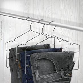 Cabide Triplo para Calças Cromado O Cabide Triplo para Calças é ideal para organizar e otimizar o espaço no seu guarda-roupa ou closet! Este cabide permite que você pendure três calças no espaço de apenas um cabide, economizando 66% do espaço vertical. Características Principais: Organização Máxima: Armazena 3 calças de forma eficiente, mantendo-as visíveis e sem vincos. Material Premium: Fabricado em Aço Cromado de alta qualidade, garante durabilidade, resistência e um acabamento elegante. Design Compacto: Suas medidas foram pensadas para caber em qualquer armário padrão, sem ocupar muito espaço. Detalhes Técnicos: Material: Aço Cromado Código de Referência: 1006 Dimensões:Comprimento: 35,1 cm Largura: 0,6 cm Altura: 30,5 cm