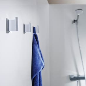 Fixado na parede, o cabide é ideal para pendurar toalhas, roupas ou acessórios, mantendo o ambiente organizado. Perfeito para banheiros residenciais ou comerciais.
