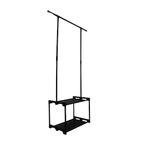 Versatilidade e Funcionalidade Equipada com 2 prateleiras e um cabideiro integrado, esta arara oferece o espaço necessário para pendurar roupas e organizar outros itens essenciais. A sapateira inferior é perfeita para armazenar sapatos, mantendo tudo organizado e de fácil acesso.