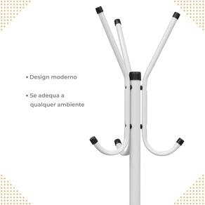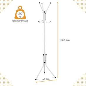 Benefícios: - Fácil e rápido de montar - Fabricado em aço carbono com pintura antiferrugem - 6 ganchos para pendurar o que quiser - Ocupa pouquíssimo espaço - Design simples e moderno - Pés antideslizantes - Estrutura fixa que não balança