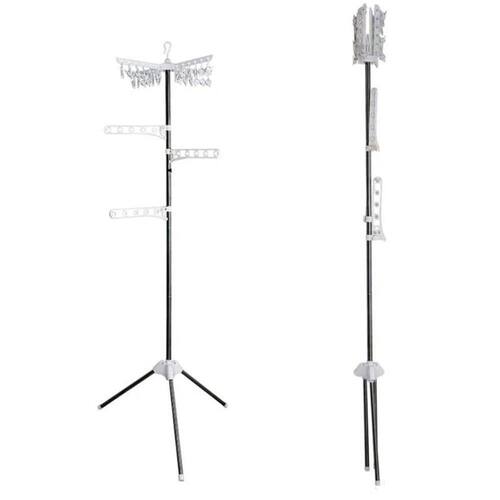Cabideiro Articulado Modelo Branco com Braços Giratórios para Pendurar Roupas em Metal e Plástico, Pés Altos