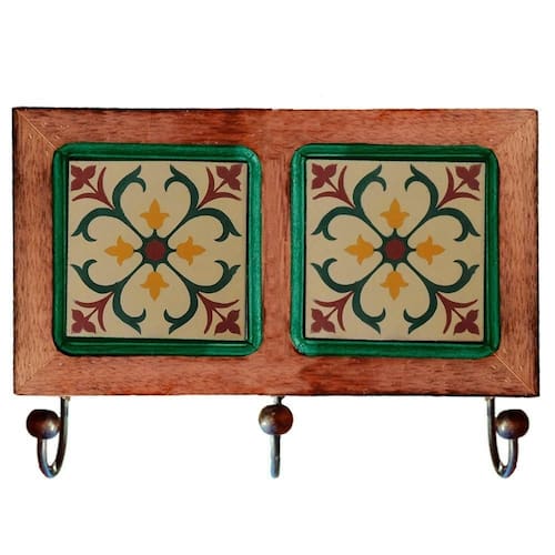 Usando apenas materiais nobres, este cabideiro também ajuda a trazer elegância a decoração, feito em madeira de demolição, seus ganchos de ferro recebem uma pintura eletrostática, que não enferruja, fazendo do ladrilho hidráulico a cereja do bolo, como um recuso frequentemente pelos designers, quebra a monotonia dos tons brancos e cinza das decorações modernas, fazendo de sua decoração mais sofisticada sem gastar muito.