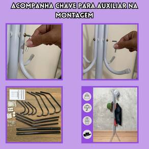 A montagem é fácil e rápida, basta encostar os ganchos no local indicado e rosquear.