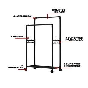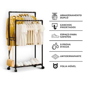 A Arara Dupla para Roupas. Não apenas uma, mas duas barras para pendurar suas roupas com facilidade, oferecendo uma capacidade de até 5kg de peças. Esta arara é a resposta para a otimização do seu espaço, permitindo que você mantenha suas roupas organizadas sem comprometer a área útil do seu quarto, escritório ou loja.