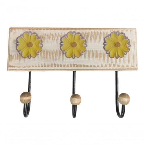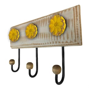 Cabideiro Toalheiro 3 Ganchos Madeira E Ferro Artesanal Cor Amarelo