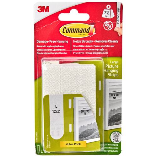 Fita para pendurar quadro e moldura, grande, branca, 4 pares da Command (17206-ES), 17206-12ES