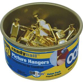 OOK 50607 Cabides para quadros, ganchos de arte, latão, ganchos de imagem reutilizáveis, 9 kg (conjunto com 30)