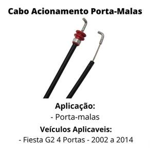 Cabo Acionamento Fechadura Porta-malas Fiesta Após 02 [f103] CONTEÚDO DA EMBALAGEM ------------------------------------------------- - Cabo De Acionamento Da Fechadura Do Porta-Malas (Mecânica) VEÍCULOS APLICÁVEIS