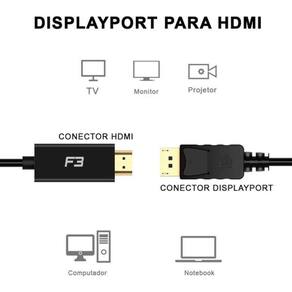 Marca: fang hao jianModelo: jc-cb-dmi18Permite que você conecte o seu macbook ou qualquer outro equipamento com saída displayport em uma tv, monitor ou retroprojetores com entrada hdmi. Converte o sinal de entrada displayport padrão em hdmi.Características do produto: Resolução de vídeo suportada: 480i, 576i/p, 720i/p, 1080i, 1080p, 2160p Imagens suportadas: 2d, 3d Versões compatíveis: 1.4 Compatibilidade: todos equipamentos com saída displayport Conectores: displayport macho x hdmi macho Revestimento: pvc Entrada: displayport macho Comprimento do cabo: 1.8 m Cor: pretoAtenção: esse cabo não funciona de hdmi para displayportExemplo: placa de vídeo é hdmi e o seu monitor é displayport, esse cabo não serve dessa forma
