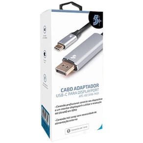 Cabo Adaptador Usb-c Para Dport Macho 4k 60hz 1.8m 5+ O Cabo Adaptador USB-C Para Dport proporciona praticidade, versatilidade e conectividade, oferecendo a você espelhamento do seu smartphone, tablet ou computador na TV, monitor ou projetor. Além disso, possuindo tecnologia Plug and play, não é necessário configuração ou fonte de alimentação externa. Características Compatibilidade: Macbook Air (1), Macbook Pro (2), iPad Pro (3), Samsung Galaxy (4) e outros dispositivos compatíveis com o padrão USB Tipo C Thunderbolt 3