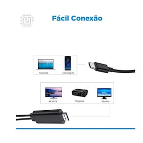 O Conversor Cabo USB-C para HDMI é perfeito para apresentações, compartilhamento de conteúdo multimídia ou simplesmente ampliar sua área de trabalho.