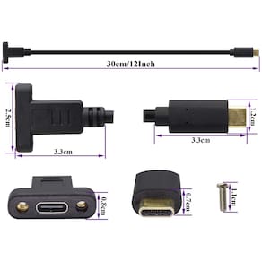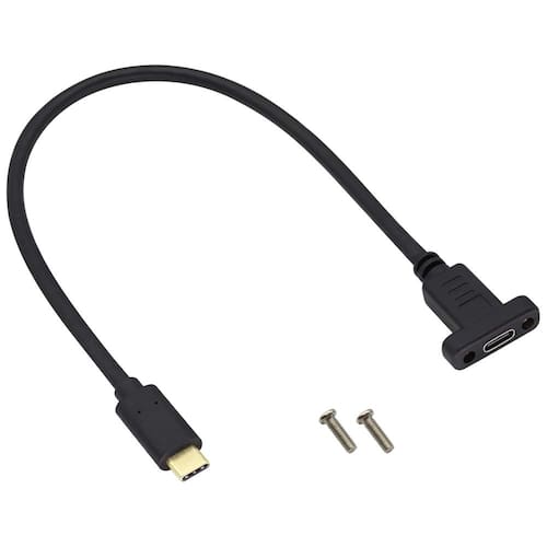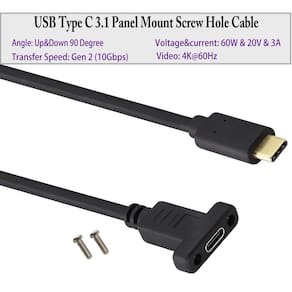 - Quantidade: (1 pacote) Tamanho: Comprimento (0,3 m/1 pés) Cor: (preto) Conectores 1: Gen 2 (10Gbps) USB 3.1 Tipo C Cabo de extensão macho (3A), Conectores 2: Geração 2 (10Gbps) USB Tipo C 3.1 Cabo de parafuso de montagem em painel fêmea (3A)
