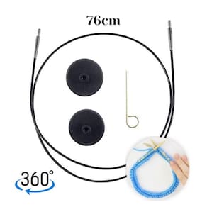 Cabo para Agulha Circular Intercambiável 360º Black Silver - Knitpro Tamanho: 76cm Perfeito para projetos maiores, o Cabo Intercambiável KnitPro Black Silver com tecnologia 360º oferece máxima liberdade de movimento e evita torções, mantendo o fio sempre na posição ideal. Feito com materiais resistentes e flexíveis, o cabo se acomoda de forma plana, sem dobras, sendo fácil de guardar e manusear. Possui união suave, que permite que os pontos deslizem pelas agulhas sem esforço, ideal para quem busca fluidez no tricô. O cabo vem acompanhado de duas tampas de extremidade e uma chave de aperto, que garante uma fixação segura e prática. Projetado especialmente para ser com as agulhas de madeira Ginger da KnitPro. Contém: - 01 Cabo - 01 Chave de cabo. - 02 Tampas de extremidade. Marca: KnitPro Modelo: Cabo Para Agulha Circular Intercambiável. Referência: 1067 Cor: Preto. Dimensões do produto embalado: 10 10 10 cm. Marca: Não Informado