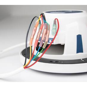 18 condutores AWG para iluminação RGB: amarelo, vermelho, azul, verde - Condutores 16 AWG para conexões de alto-falantes: preto e vermelho - Atende aos padrões ABYC
